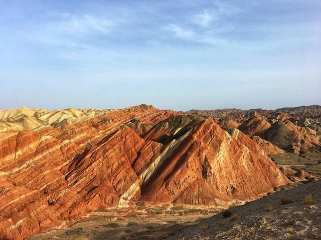每天最佳拍摄时间是下午,这时的丹霞最有层次感,拍摄日落和日出的最佳地是4号观景台,2号观景台适合拍摄全景。
