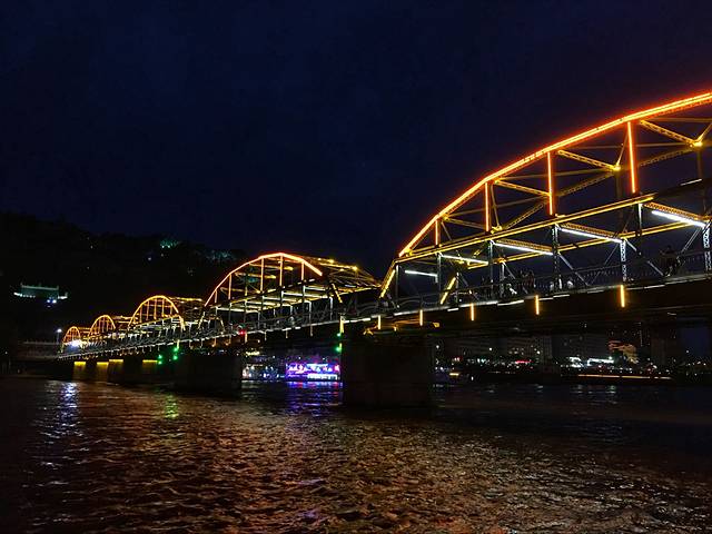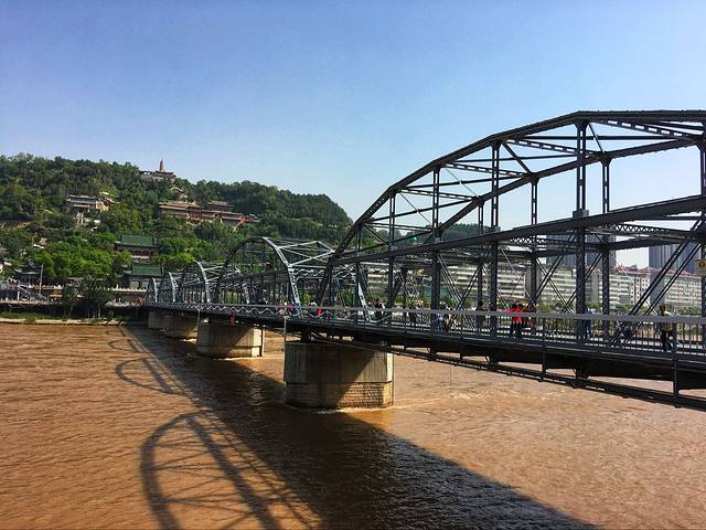 中山桥,兰州的标志性建筑,有“天下黄河第一桥”之称,是坐落在兰州城关区白塔山下的一座跨黄河铁桥。长234米,宽7.5米,有6墩5孔,桥上飞架5座弧形钢架拱梁。建于清光绪三十三年(1907年),历时三年建成。全部材料均从德国海运而来,初名“兰州黄河铁桥”,后改称“中山桥”。 现今是“黄河风情线”上最重要的景点之一,可在桥头选择乘坐快艇或者羊皮筏子近距离感受黄河。