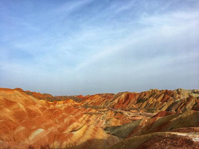 出发前往此站最后的目的地之一,张掖丹霞地质公园,从市区驱车到景区大概需要40分钟左右,一路上跟拼车小伙伴聊的很开心~顺带也把晚饭的羊肉也约起来了。