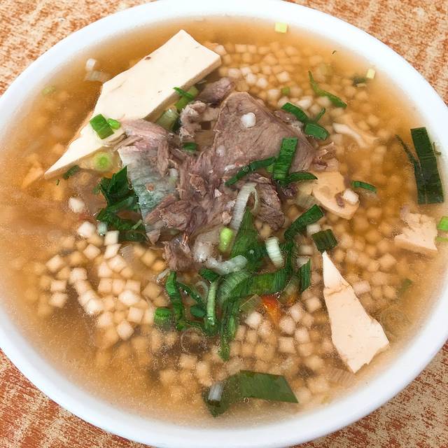 早餐吃这家,也是秦姐推荐的张掖美食之一——牛肉小饭。牛肉小饭名字叫小饭,看上去像土豆,实际上则是把面做成米粒大小的小丁,面条颗粒虽然很小但是很有咬劲,配上切成条状的牛肉、豆腐、粉条,再就上点葱和香菜热呼呼地吃下去,非常美味!价格非常便宜,这可是只有在张掖才能享受到的。