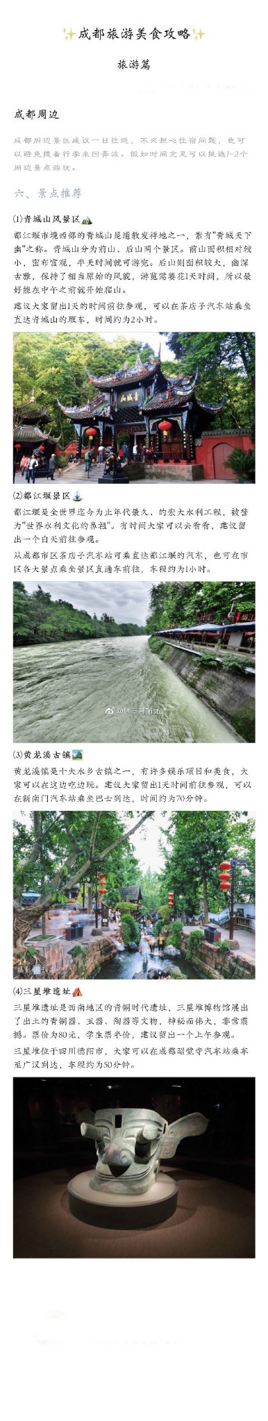 【成都四天旅游美食攻略】成都真的是一个去了还想再去的城市!今天给大家推荐成都20个景点以及成都火锅串串小面川菜肥肠鸡等20家美食!
