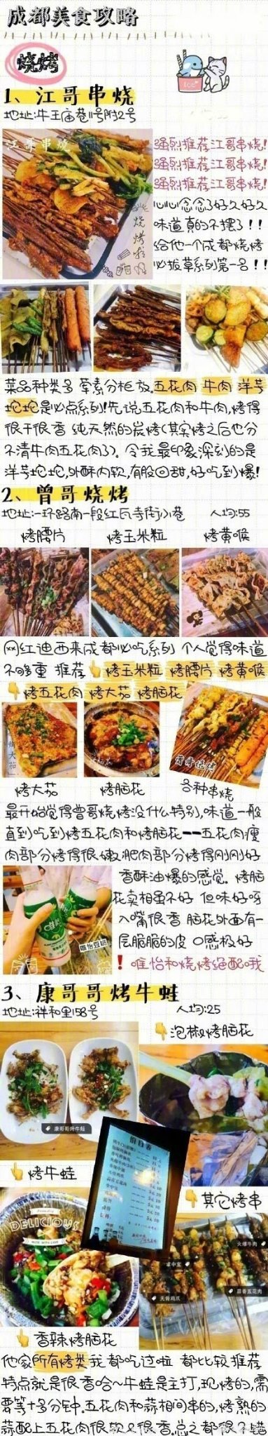 呕心沥血整理的成都最全美食攻略,包括串串、烤肉、川菜、烧烤,各种消费层次,各种口味都有,总有一家能满足你的胃口。成都的兄弟伙些,整起哟~