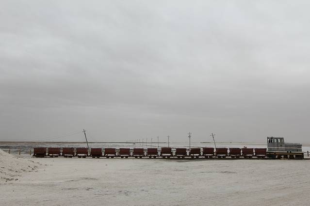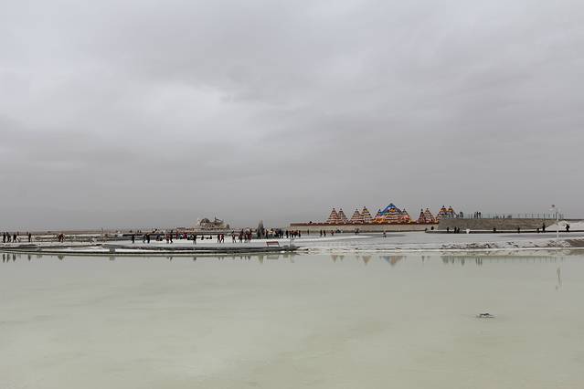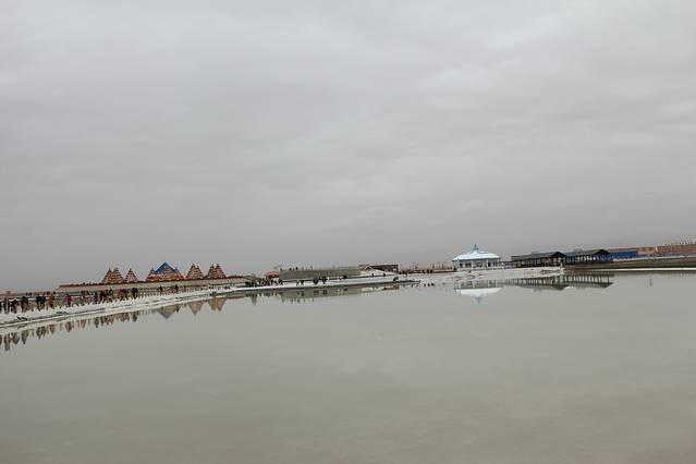 坐小火车(单程50元)进入盐湖深处。沿途可以看到采盐机器在工作,更是看到了水面如镜的盐湖、身着鲜艳服饰的兴奋的人群.......
