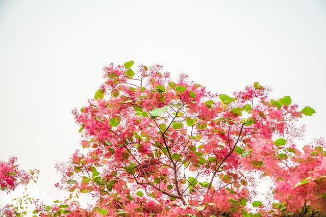 一路上大家总是会突然想起很多人都会问的一题:黄栌花为什么不是黄色而是粉红色呢?