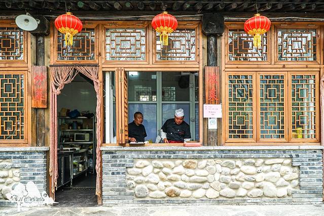 去快活林吃早饭的路上路过的小院,同我们住的桃叶谷是同样风格设计,旁边的狗狗超有爱的在我们每次路过的时候都会走出来接我们,超级萌