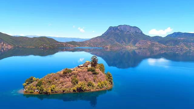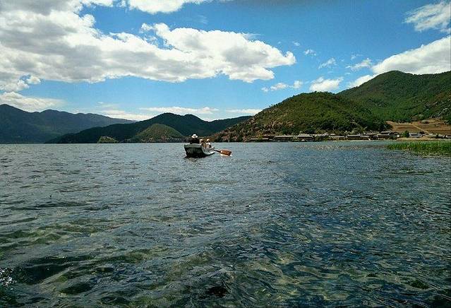 还记得曾经一档很火的综艺节目《亲爱的客栈》吗,它的拍摄背景就在泸沽湖,我们划着小木船使向了那个小岛。