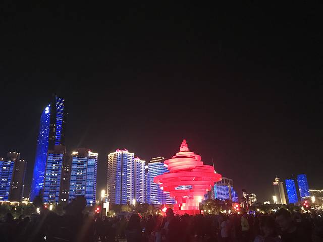 五四广场夜景,人很多,一点不亚于上海的南京路。