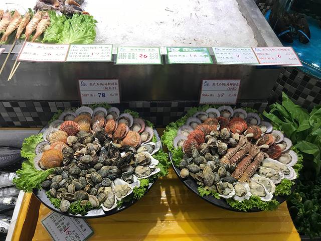 一条街上全是室内的那种海鲜大排档,人均都是一百左右,各家菜色和味道都是大同小异,尽管挑人多的进就好了,海鲜真的都很鲜,比较赞的几个菜,是烧黄花鱼,辣炒皮皮虾,辣炒蛤蜊,墨鱼水饺,凉拌海蜇,原浆等等。