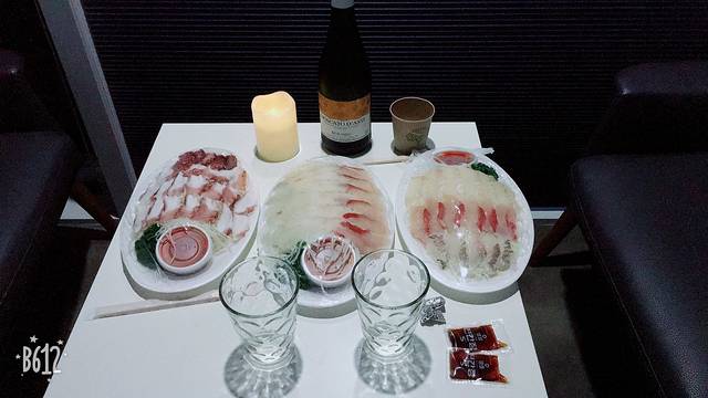 我们就买了三盘生鱼片回酒店。