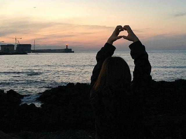 看着夕阳,看着安静的大海,心里很舒服,缓解日常生活所带来的压力。真希望时间停留在此刻。