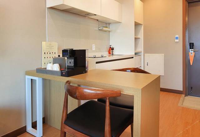 可以自己做饭的小厨房。还有咖啡机哦。