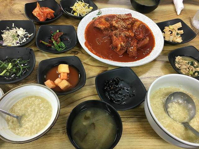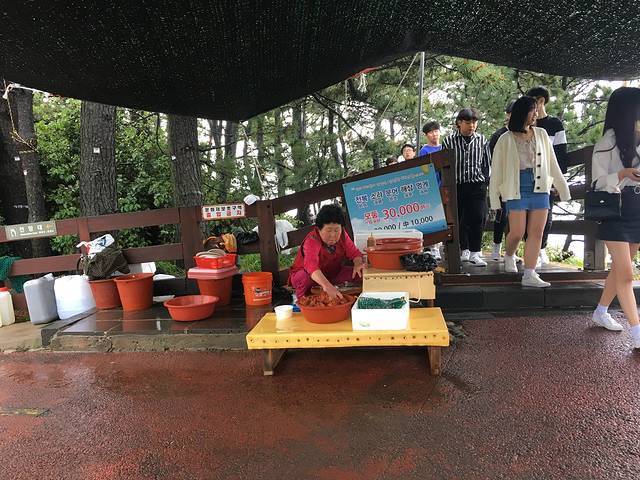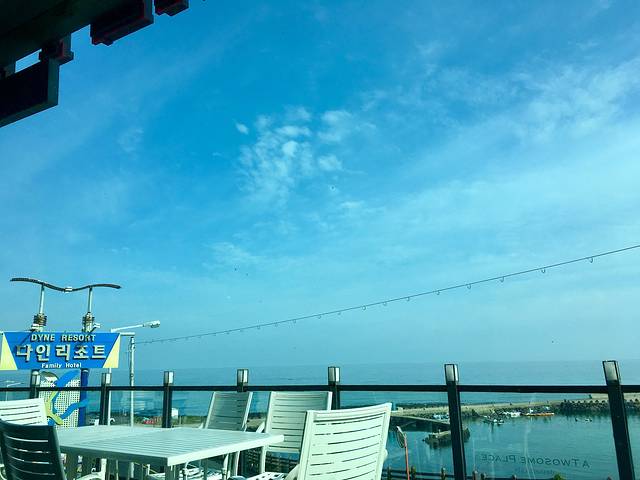 到了月丁里海边,初见海边美景,不管雨天心情很美丽。沿着海边开车,一条线的酒店,餐馆,咖啡馆,太多了。简单欣赏海边美景,找了家餐馆(忘了名字),点了济州岛黑猪套餐,煎海鱼,豆腐汤。雨天一上午有点凉,吃顿饭暖一下身。味道中规中,还算不错吧。