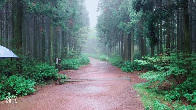 路上下起了小雨。旅游遇到下雨是比较郁闷的事情,但没想到绵绵细雨的思连伊森林另有一番味道。一棵棵挺拔的树木头顶上飘着雾,配上脚底下的红土...