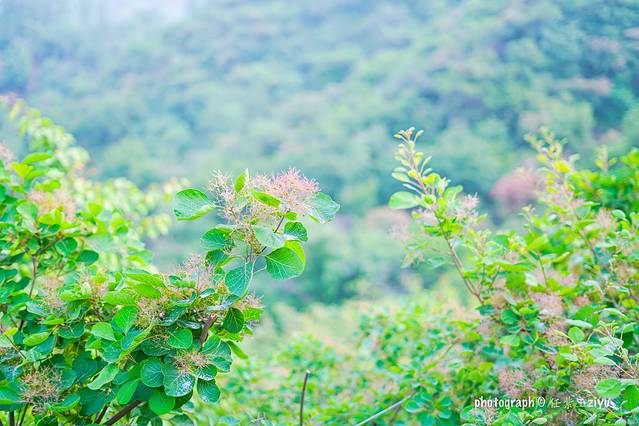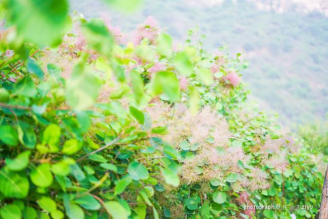 说到黄栌,可能有人不知道具体是什么植物,其实就是秋天我们观赏的红叶(的其中一种)啦。 有名的香山红叶的主要品种就是黄栌。 所以坡峰岭最早名声在外,靠的也是秋季漫山的红叶。 只是没想到,在金色的成熟前,黄栌在春天如此娇艳粉嫩,满山的粉红点缀着春天,成为了另外一种景观。