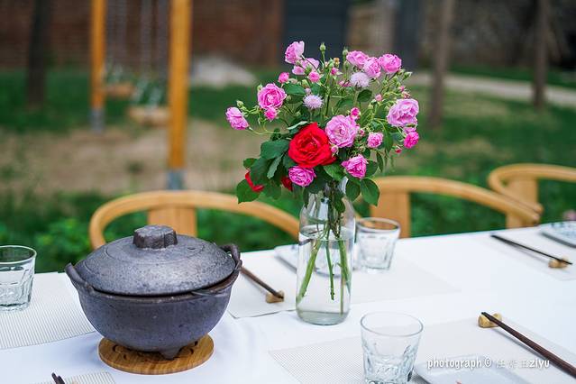 天色渐渐转暗,小院的厨房已经香气四溢,手擀面在大锅中咕嘟嘟煮着,西红柿和茄子的卤装在陶锅中,配上鲜花。农家院也拍出了ins风,同行美女波波的环境音乐放起来,小宇说好像到了三里屯的天台。当然,这是在房山的山脚下,因为三里屯没有星空呀。