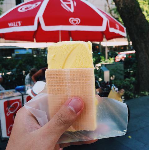 各种口味的冰淇淋用面包或是威化饼干夹着,榴莲味和巧克力味更是五星推荐。乌节路街头冰淇淋已经成为到了新加坡不可错过的美食。