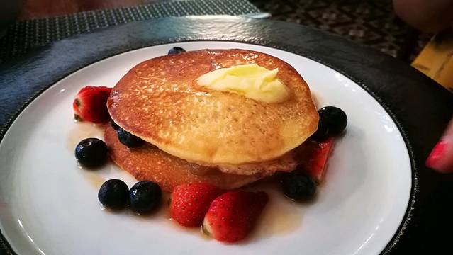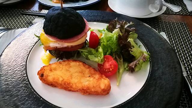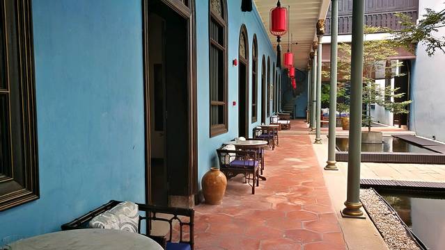 回诺布拿上行李,前往张弼士故居酒店。酒店很特别,也是槟城的一个景点,可供参观的博物馆,但如果不住在酒店住,每天只有三个时间点可以进入参观,据说需要提前预定,当然我们可以整天随便出入玩耍。建筑通体蓝色,据说是用槟城盛产的蓝花加工变成浆汁酿成颜料然后涂于墙身,所以也称为蓝房子。房间还提供免费的水果、饮料、糕点。办理好入住,酒店提供免费的单车,开启乔治街头游走逛吃模式。打卡了多春茶室、愉园茶室,吃到了当地人推荐的煎蕊、蚝煎、红豆冰等,穿行大街小巷,漫无目的游走,开心就停下来拍拍照,迎着夕阳返回酒店。不过自己乱逛能找到的壁画比较少,但感受当地特色建筑、人文气息也是不错的,所以建议入住酒店可以先问前台要一张壁画地图,会非常清晰的找到你想看的壁画,壁画集中的地方离酒店也不远。晚上在酒店隔壁的红园夜市吃晚餐,觉得价格比之前的要贵一点。