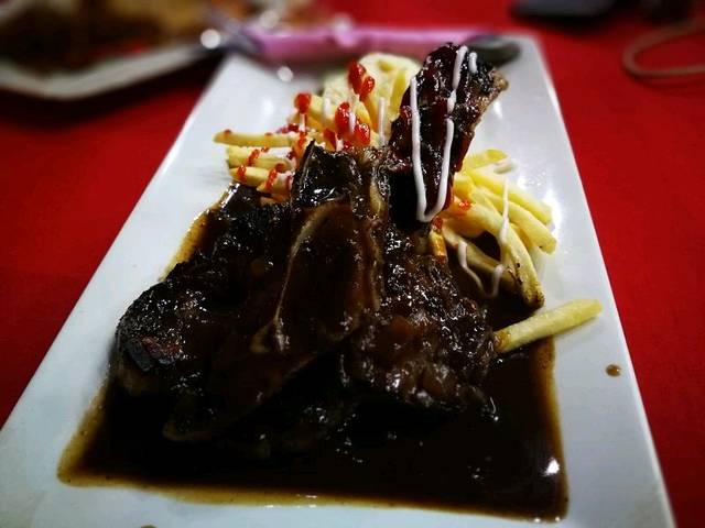浮潜的一天还真的挺辛苦的。回到酒店梳洗完毕都7点多了,出去觅食。看的攻略本来是打算去瓜镇夜市的,可是后来才得知不是每天都有的,据说是周三六才有,而且场所也不固定,我们那晚是周二,也就没去成了。因为又困又饿外面还下雨,就想偷懒在酒店一楼的餐厅点吃的,结果就是又不好吃还贵,上菜特别慢,最终雨也停了,决定再出去走走,在周边找了一家当地人开的宵夜摊,点了他推荐的羊排(有一点点骚味)、胡萝卜汁(超级棒)、香草奶昔(也很不错),还有个啥的忘了,后悔一开始没出来找吃的。