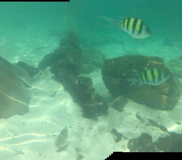 Day 3:芭雅岛浮潜。分为平台浮潜(深浅)和沙滩浮潜,深浅是在离岸边比较远的地方,沙滩浮潜就是在岸边,当然价格也是有差距的。我们选择的是沙滩浮潜(180MB),早上8点多有车在酒店门口接送到码头,然后领手环乘船出发,约1.5小时抵达芭雅岛。沙滩浮潜可领取浮潜装备(免费提供潜水镜和呼吸管),听工作人员讲解注意事项后可以开始活动。在这里提醒大家,浮潜最好自备长袖长裤潜水服做好防晒,还有之前有看攻略说浮潜不能涂防晒霜,怕伤害到海里的珊瑚,也许是一个原因,但还有个重要的原因是,如果防晒霜涂太厚,有可能会影响你戴潜水镜,无法与皮肤粘合在一起,导致潜水镜进水,这是工作人员告诉我们的。结果我们把脸上的防晒霜擦得也差不多了。岸边也是有很多小鱼鱼和珊瑚的,对于我这种有深海恐惧症的人来说,岸边浮潜一下就够了,还很不幸的被黄色的鱼咬伤,它们牙齿真的超级坚硬,所以不要随便喂食。岸边风景也很美,可以各种凹造型拍拍拍。中午大概12:30开始提供免费的午餐和饮料,3:00就要准备冲洗更换衣服返航啦。