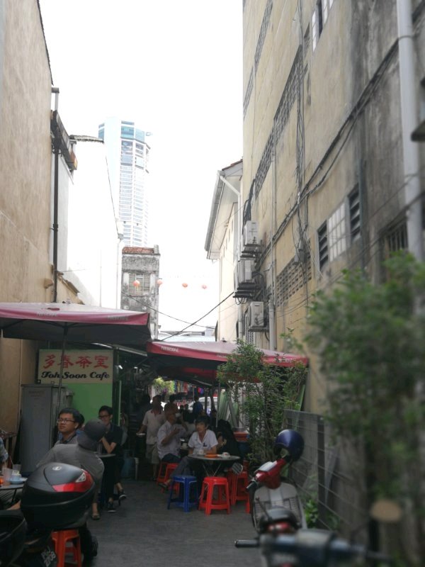 到达槟城是6:30了,因为之前下的uber用不了,就在机场出口处人群中找了个会说中文的大哥,从机场到乔治街大概40分钟,30RM。入住酒店。其实就是青旅,我们4个女孩子很不习惯,感觉不太干净,人也比较杂,出门在外还是不要尝试的好,几乎一夜未眠。放好行李,去附近的汕头街夜市找吃的,大概15分钟步行能到,一条街随便吃,找一家坐下,再去其他家点都给你送来。吃了天皇鸡脚、炒果条、海南鸡粉、煎蕊、娘惹粽,四果汤,都还行,反正出去了尝试一下当地口味。