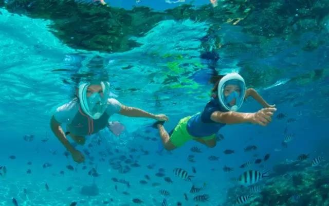卡侬潜水全干式防雾呼吸眼镜,简直是不会游泳、换气的人的浮潜神器!通常的浮潜装备眼镜处会因为鼻子的呼吸关系导致模糊,而且跟团浮潜提供的浮潜用具也不卫生,自己准备一套好用的浮潜用具非常有必要。
