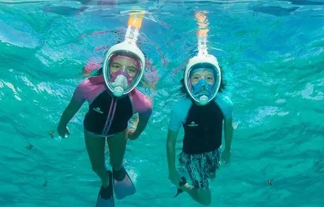 这款全干式防雾呼吸眼镜,只要带上面罩,鼻子和嘴都可以自然呼吸,还可以说话,完全不必担心呛到水。面罩护镜设计成了180°宽大视野,还有防雾设计、放大镜功能,让你在水下能看得更远更清晰。特别适合孩子和老人使用,可以尽情享受浮潜的乐趣。