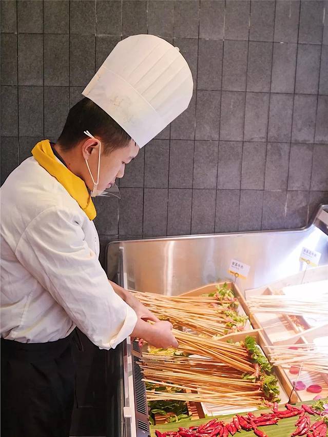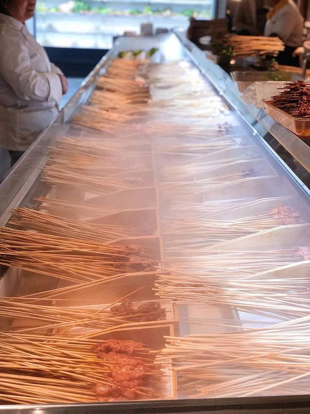 这样,顾客们吃到的串串菜品总是最新鲜的,像以往老式串串店那种把菜品放在地上穿的场景,这里永远都不会有!