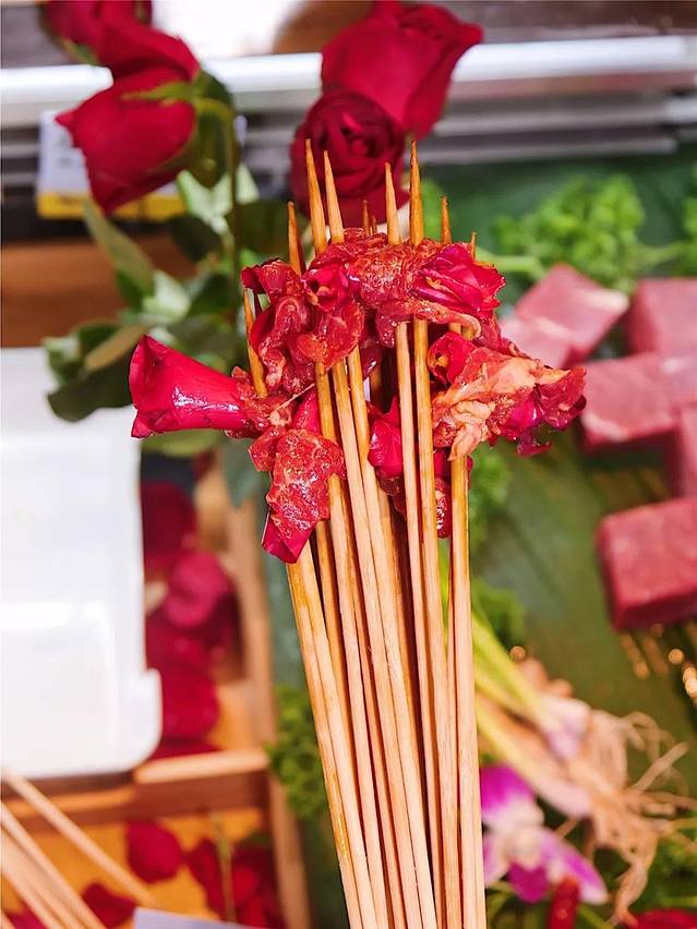 玫瑰花居然可以拿来裹牛肉?!!!是的,在饿狼串说这里,没有什么不可能!