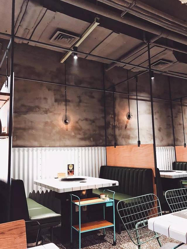 整个风格是简约而又不简单的Loft工业风,故意裸露的墙面、复古与现代结合的桌椅、金属质感的细节,给人很强的视觉冲击力,很像精心打造而成的电影片场。