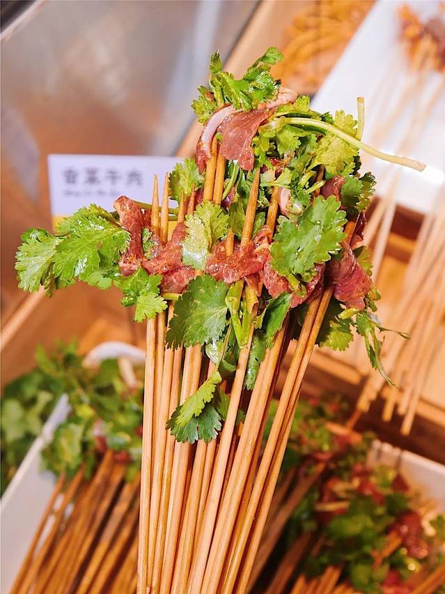 现在吃串串的标配当然还少不了香菜牛肉,我知道很多人对香菜是拒绝的,但是裹上牛肉了就是一个大翻身!