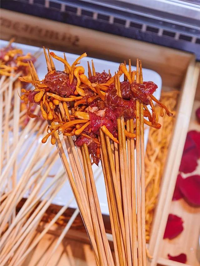 虫草花的口感想必大家也了解,吃起来很嫩,而且营养价值高,配合上同样营养价值很高的牛肉,难道不是天作之合吗?而且这价格和其他牛肉都是一样的,赶紧多拿几串吃穷老板!!
