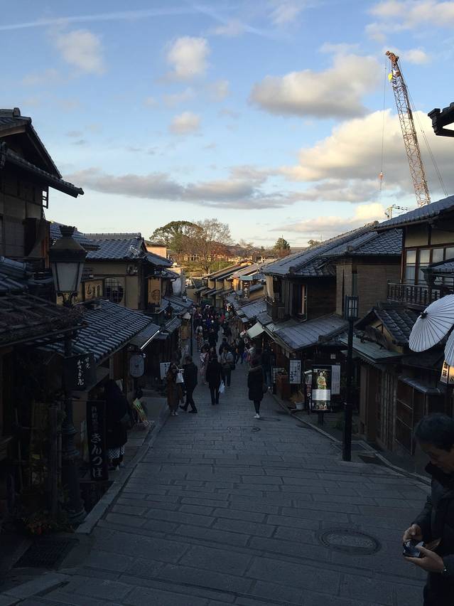 金阁寺出来时间还早,我们想了想就把昨天的行程补上吧,但清水寺我们放弃了,主要还是想去看看2+3年坂。在那里看到了很多和多穿着和服的人,有日本的也有不是日本的,其中还有很多应该是还在读书,男生女生结伴出行。其实这里就类似于步行街一样的地方,性质和上海的七宝老街这种有一点像。