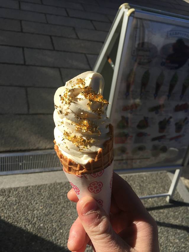 金阁寺外面小店卖的金箔冰激凌,看起来很值钱的感觉