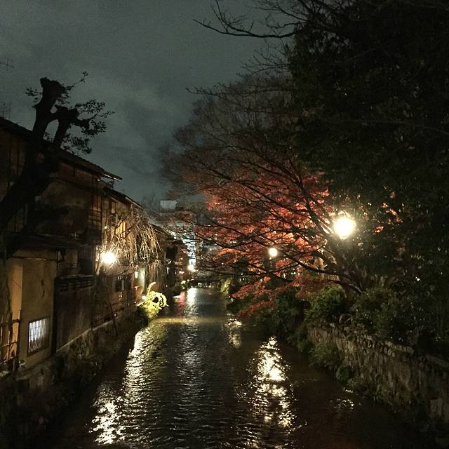 从大社出来我们便决定乘车去花见小路,下车后发现天色已经黑啦。我们沿着花见小路漫无目的的瞎逛,结果真的碰上了要去上班的艺妓,然后我们准备找一家有艺妓表演的店吃晚饭,(之前看别人的攻略上说挂红灯了和白灯笼的店性质不一样)结果基本上所有店的门都是关着的,我们又不敢贸然进去,深怕万一进错了……结果就导致我们找了很久也没有下定决心去哪一家。结果好不容易确定了一家,想回去的时候发现迷路了囧……最后我们随便进入了一家铁板烧,虽然没有艺妓表演,但是味道真的超级棒呢。