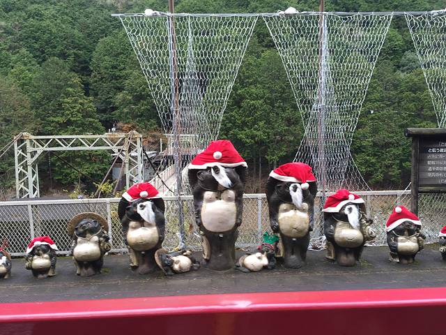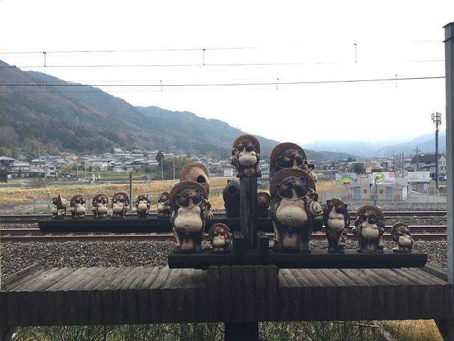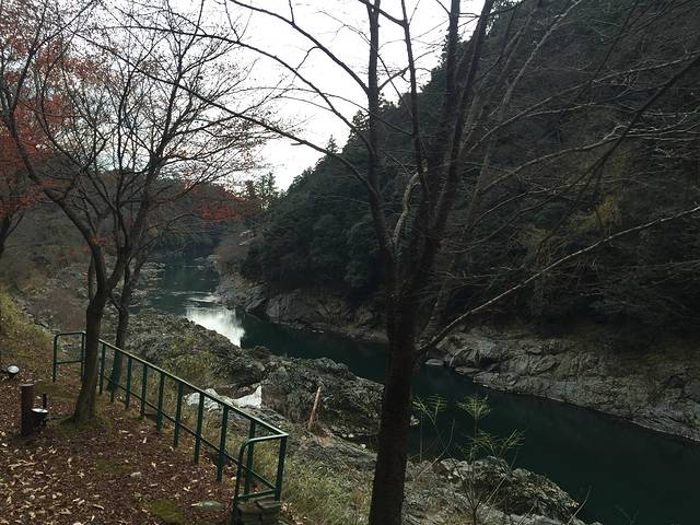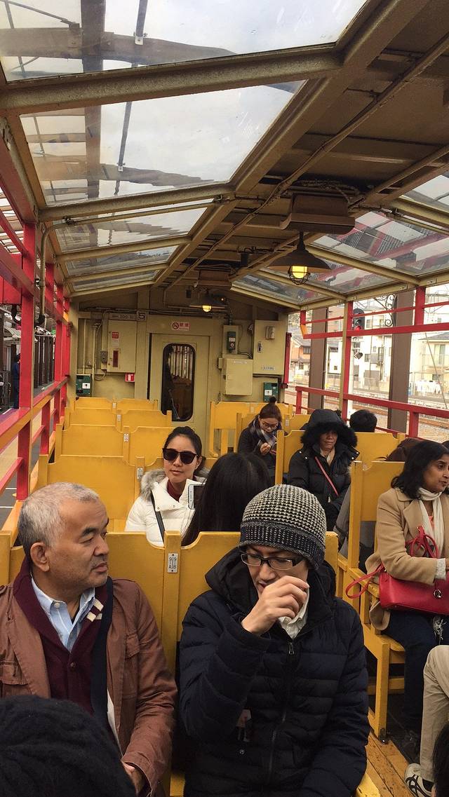 嵯峨野站下车后走一小段路(路上有很明显指示)就到小火车的售票处啦。这里买票是分站买的,可以买来回票,我们想了想,还是买了单程的,因为本来听说从山上有一条小路走下来很美(但后来发现,那是夏天或纯的事情,和冬天半毛钱关系都没有)。我们还特地选择了不封闭露天的那一小节车厢(攻略上说上下车要坐不同边这样风景会比较好,但事实证明我是无所谓,因为小火车的整条形成同时兼顾了两边的游客,一边可能前半段风景较好,另一边后半段风景更好),但是最终就是我们两个人差点冻死在路上我们对面的是一对泰国来的小情侣,我们内心默默的揣测他们心理阴影。冬天万物凋零,所以整体的景色并不出众,但是就小辉哥的体验其实还是比较新奇的。路上还有快照推销,会帮你拍,但是你也可以选择不买。还有列车长用日文的景点介绍,我是一个字也没听懂(对了,观光小火车每年都会有关闭时间,去的话记得查时间哦)