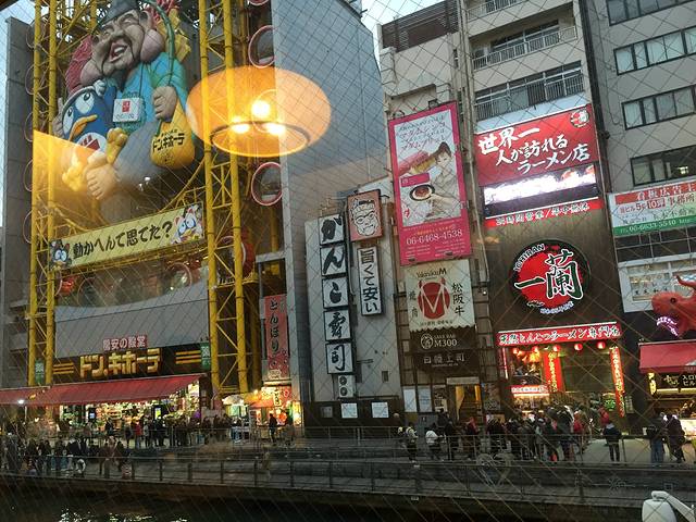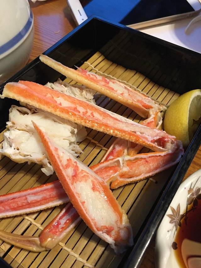 休息好,我们的目的地就是【蟹道乐】啦!在道顿掘那条路上有好多家店,我们已开始在最路口那家店进去问的时候,被告知全部约满了,好像这家是只接受预约的。我们大约四点多到的,所以再往里走的时候发现另一家蟹道乐并不需要排队,选择了靠窗的位子,套餐+单点,两个人吃的很饱。而且位子很好,还可以看到对面漂亮的街景和边上河里开过的小船。