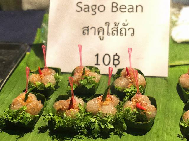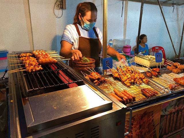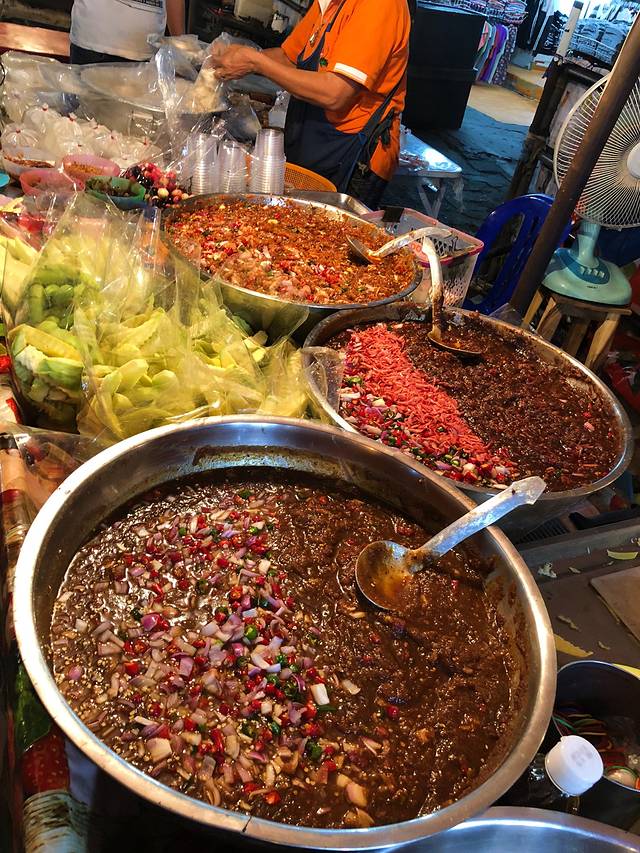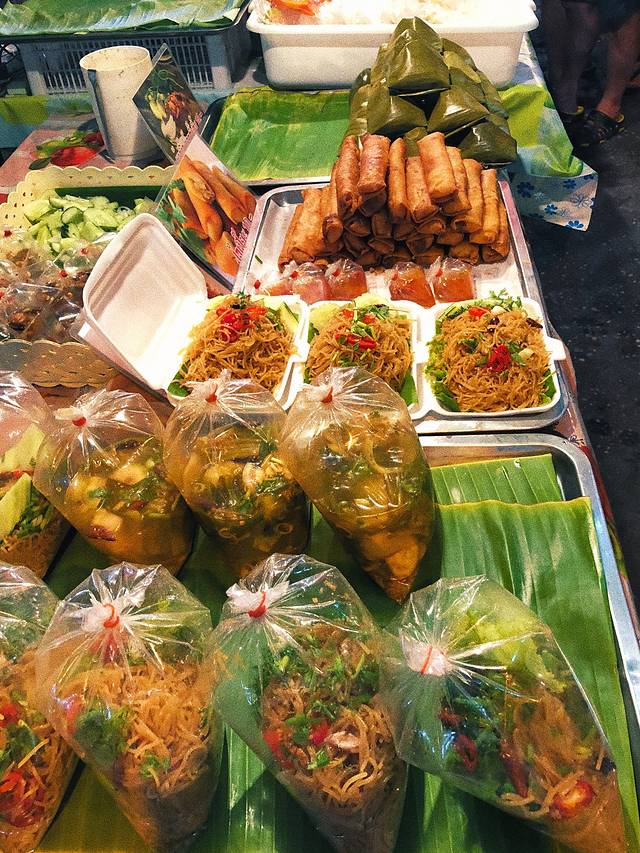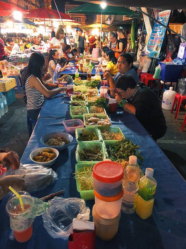 今晚的夜市和前2晚的夜市有很大的区别,卖的都是很有特色的泰国小食,我们买了烤鸡肠,凉拌粉,炸虾,都很好吃。