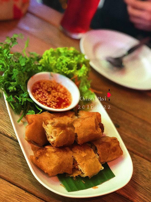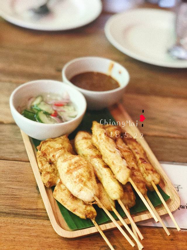 随心在宁曼路挑了间正宗泰北菜午餐,有个蟹壳糕之类的很特别没有点,点了两个菜两杯喝的一共216铢。鸡串的鸡口感吃不惯,柴柴的。