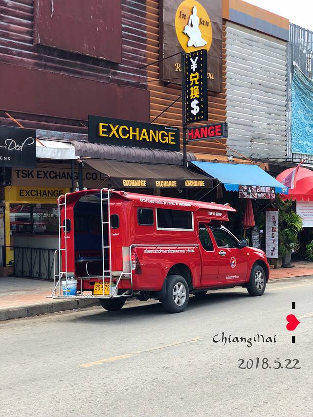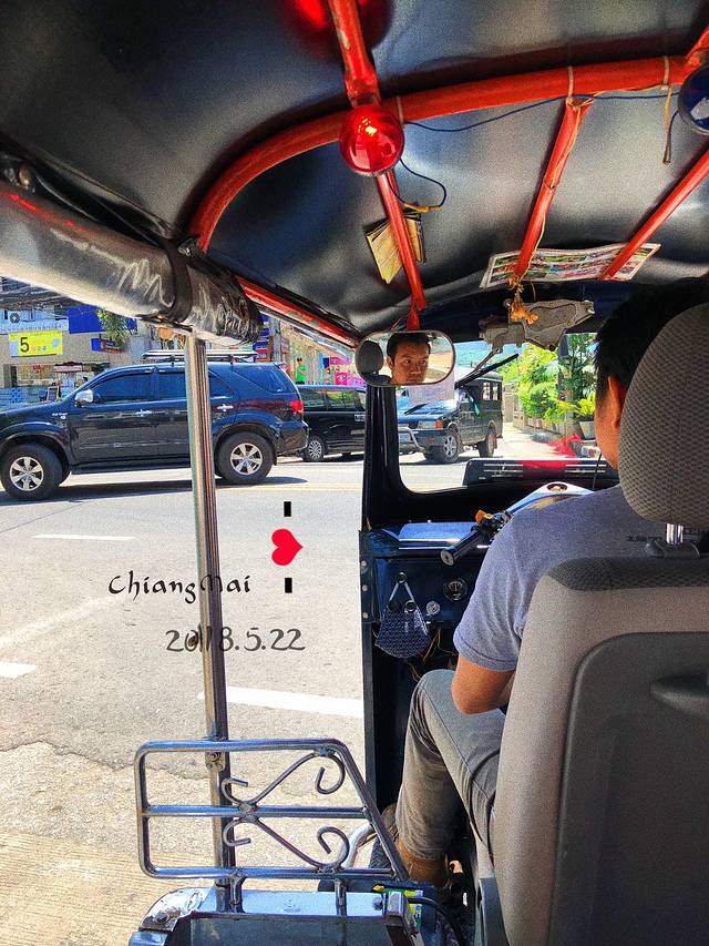 吃早餐的时候外面下起了大暴雨,大概等了半小时左右雨小了叫了台双条车去古城,清迈的司机也不会漫天载客,基本都是30铢/人在市区内,但我们每坐一次双条车就讲价一次,讲成25铢,哈哈哈哈。