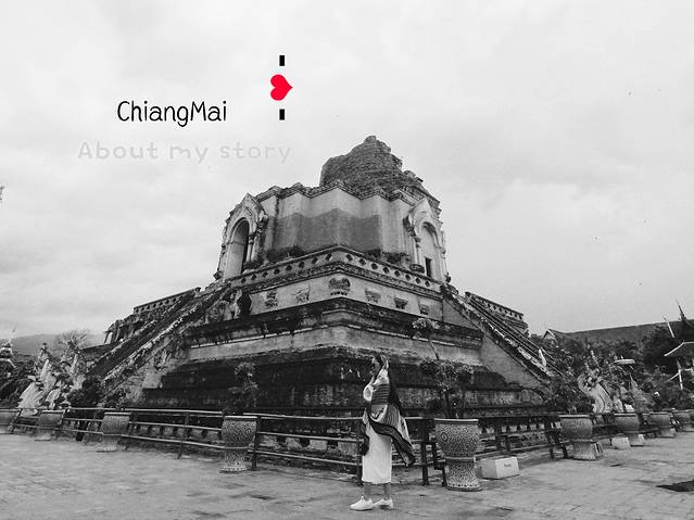 幸运的我们到达契迪龙寺的门口雨也随之停了,门票40铢/人,穿着不能是吊带,短裙短裤,露肩露脐,技巧是一条万能的披肩能解决一切