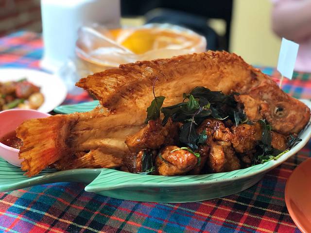 听说是泰国一个明星开的,点了炸鱼,咖喱虾,菠萝饭都很好吃,花费635铢,应该是这一程最土豪的一餐了吧。要知道泰国菜在国内价格一点都不美丽。