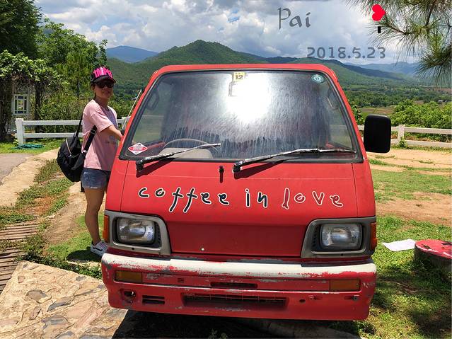 恋爱咖啡馆招牌是红色皮卡车,身后是一望无际的原野风光,果然是有泰北瑞士一称的pai。