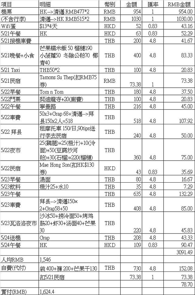香港飞清迈双程花费992人仔不包行李票,去程是香港快运航空管得不严,手提行李压根就没称重,回程是老朋友亚航,我们两人的行李都超了2斤左右,完全没问题,机票是提前一个月订于去哪儿。