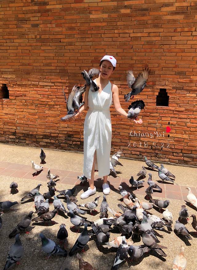 太热情太活跃了有点受不了,两只鸽子跑到我手掌上又亲又抱,这一波狗粮我吞了,边边上就有人卖喂鸽子的玉米粒,20铢/份。