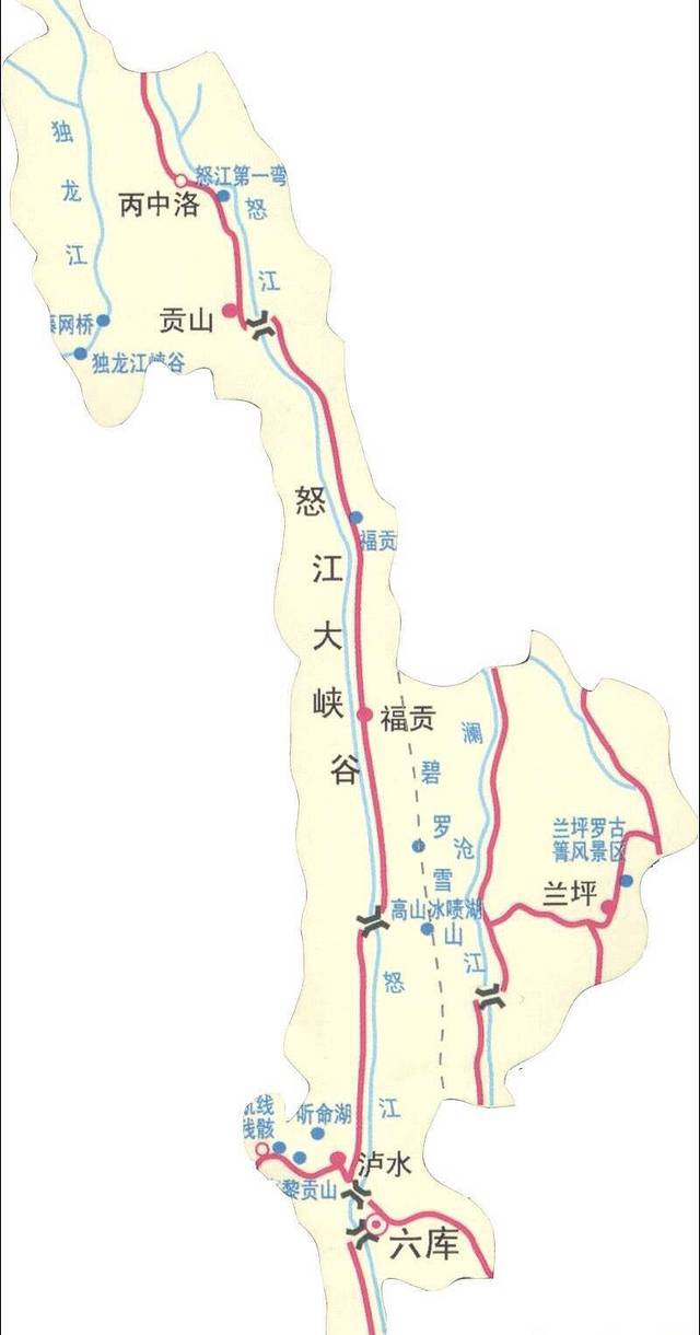汽车:怒江地区的游览顺序不论是自由行还是跟团都是沿江而上,从六库出发,经过福贡后抵达贡山,在贡山选择前往丙中洛或是独龙江,之后再原路返回。
