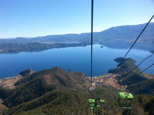 (3)格母女神山:大多数散拼并不乘坐索道前往格母女神山,可从索道上看到的泸沽湖能给你的惊喜却不是哪里都能找到的,美如画卷。索道价格110元/人。