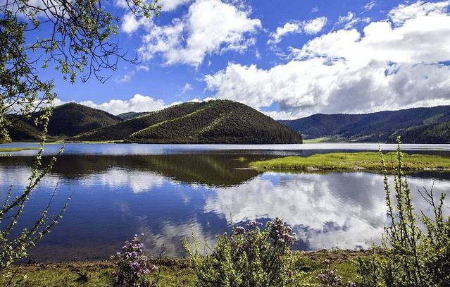 (1)属都湖:进入景区乘坐景交车约15-20分钟到达第一站的便是属都湖,拍照的好地方,有着旷阔的视野,来个大合照再适合不过,秋季的属都湖是最美的,周围的树都开始变黄,湖水映着蓝天白云,怎么拍都是大片。