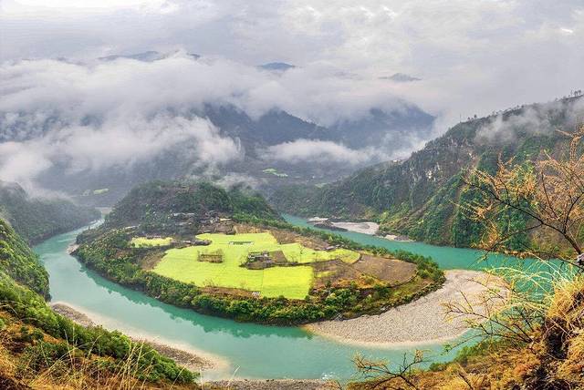 (3)丙中洛:神灵居住的地方,我们居高临下俯视怒江第一湾时,你便会知道这个地方的秋日之美。上午11点到中午1点怒江第一湾的光线最好,也是最适合拍照