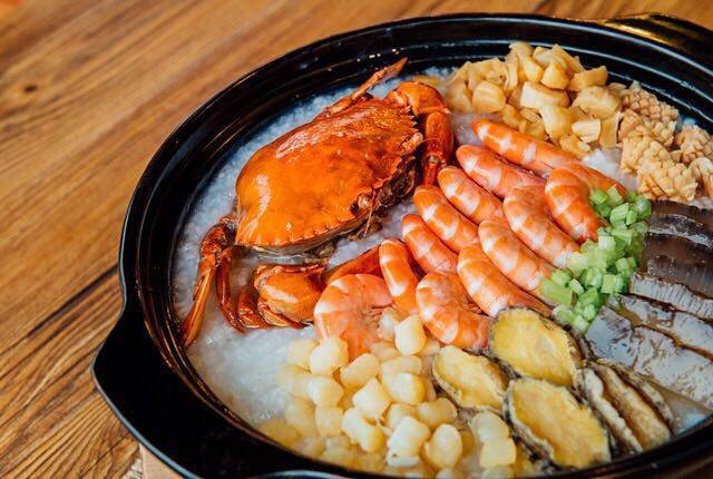 这道虾兵蟹将粥是他们家的招牌菜,一口上瘾。粥的软糯、与海鲜的鲜香融为一体,暖身养胃,一整只膏蟹熬煮出的高汤融入粥里,加之干贝、大乌参、基围虾,稠厚入味,幸福感满满。