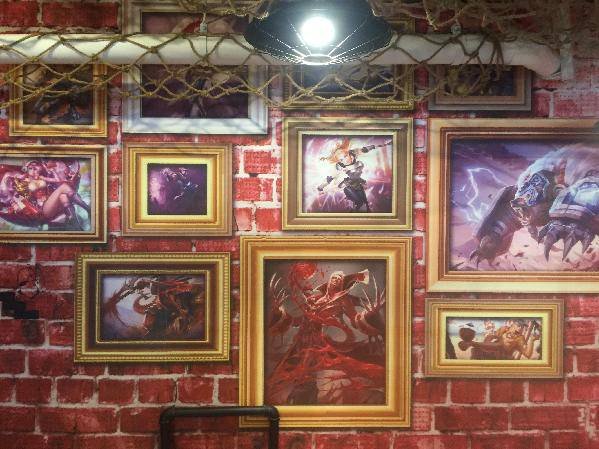 英雄联盟主题餐厅,进门有超大的ez和盖伦的雕塑,再往里走还有好多英雄可爱的小手办。
